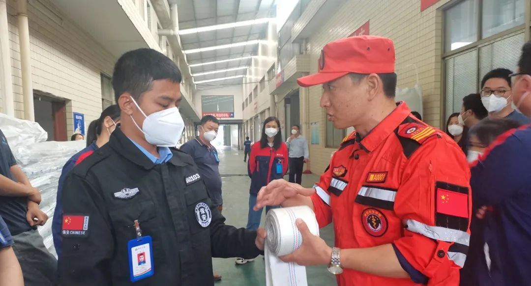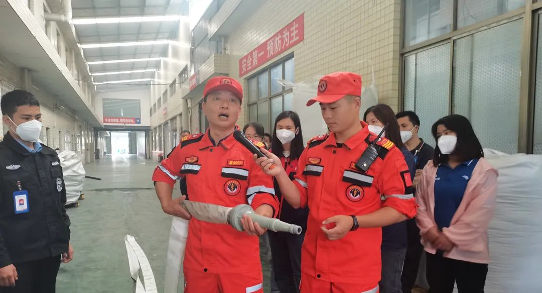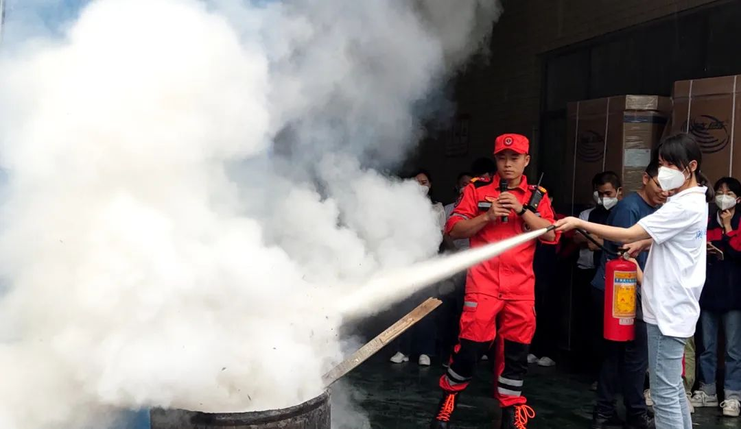 在消防演練開始之前,匯遠實業應急救援隊的隊員為全體職工詳細講解并演示了滅火器、消防栓等消防器材的使用方法,實用性極高。員工們近距離的學習和觀摩之后,面對模擬操作,信心滿滿,積極的練習使用各種消防器材,以真正提升自身的消防技能。