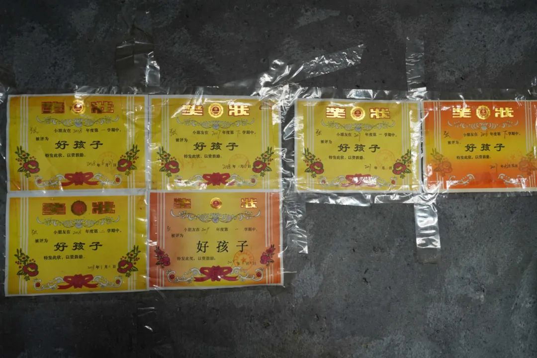 ▲被資助孩子在學校表現優異,獎狀貼滿墻